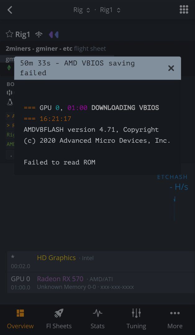 Orada da denedim lakin VRam'i ve BIOS'u görmüyor.HiveOS'ten BIOS atmayı deneyebilirsin. HiveOS'e ekran kartını tanıttıktan sonra pool'a ekle. Sonrasında overclocking sekmesinde custom BIOS atabiliyorsun ve çok basit bir işlem.