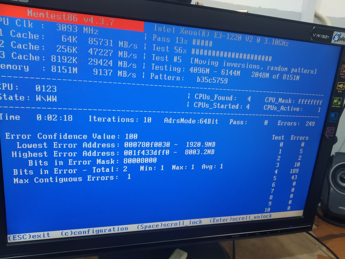 Hocalarım yardım edin bir türlü MEMORY_MANAGEMENT hatasına çözüm bulamadım. Çoğu kişi RAM kaynaklı hata olduğunu söylüyor. Memtest86 ile test ettiğimde altta ki sonucu aldım ve sorunun RAM'de olduğunu düşündüm. CPU soğutucu ile alakalı olabilir diye gevşettim ve tekrar test ettiğimde hata almadım. Ama hala değişik hataları vardı örneğin Chrome'da bazı sekmeleri yüklerken hata veriyor. Ben yokken yine mavi ekran vermiş büyük ihtimalle bu da MEMORY_MANAGEMENT hatası. Kısacası sizin yardımınızı istiyorum. Bu arada bu hatalar RX 570 aldıktan sonra başladı daha öncesinde aynı bileşenler ile hata almıyordum.