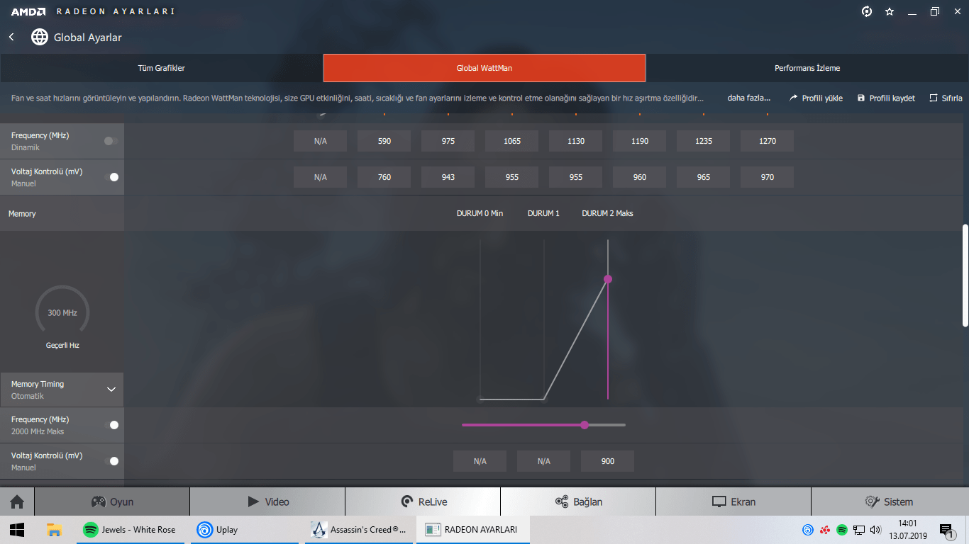 Buda yaptığım Wattman ayarları:
