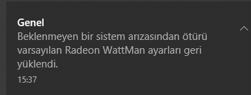 Şimdi birkaç ay önce oyundayken WattMan hatası yaşadım AMD'nin kendi yazılımından performans>ayarlanıyor kısmından GPU ayarını açıp -8 yapın demişlerdi yaptım birkaç ay düzeldi sonra tekrar olmaya başladı çözümünü yapabilen birisi var mı ekran kartına test vs yaptım bir şey çıkmadı ayarı -8 yerine -10 -11 vs yaptım -11 de işe yaradı ama yarım saat sonra oyunda tekrar kapandı PC çözümünü bilen bir arkadaş varsa konuya yazabilir mi? Dipnot: Sadece oyundayken PC kendini resetliyor.