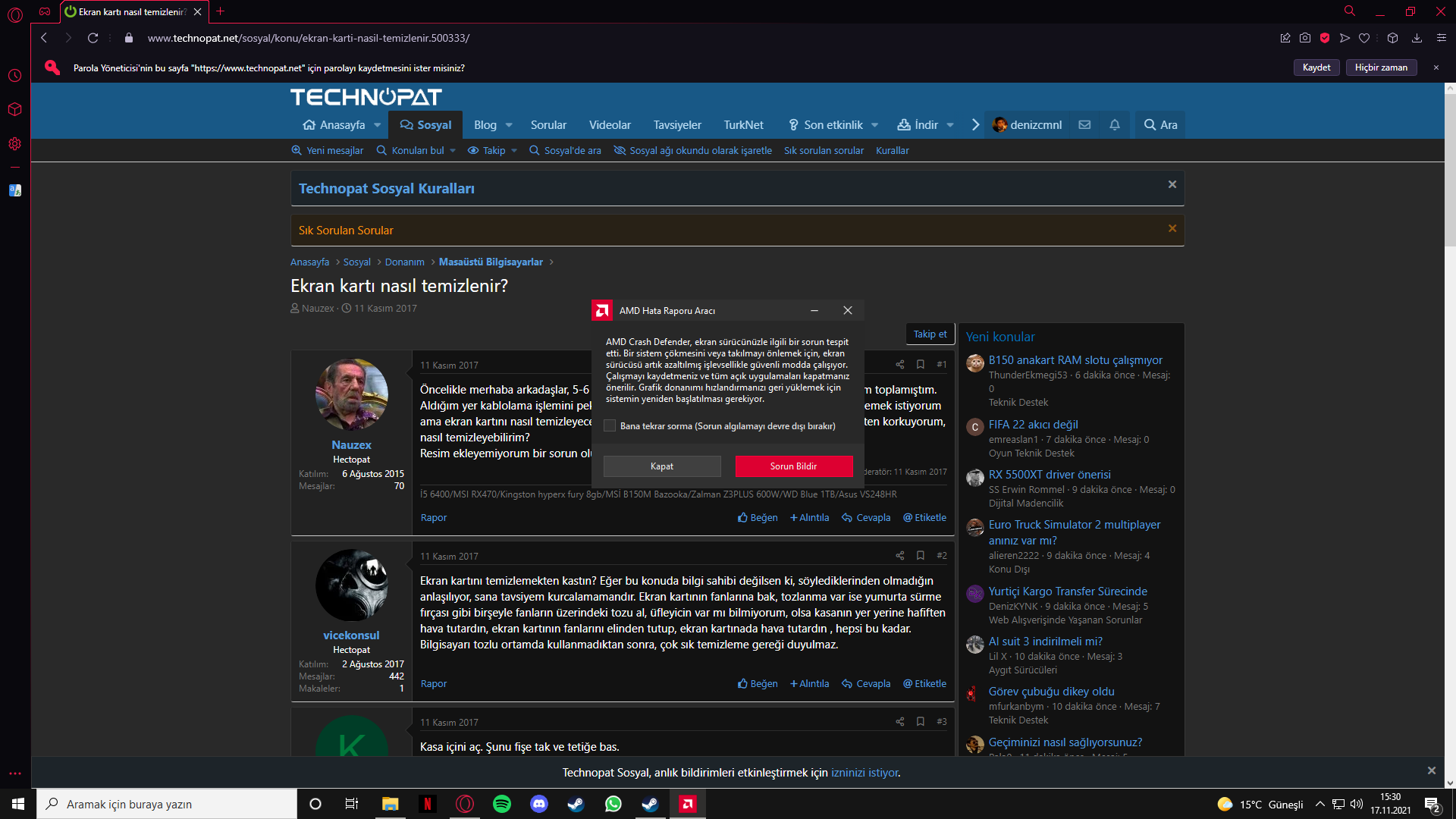 Sapphire RX 5700 XT Nitro+ Special Edition 3 fanlı bir kartım var ve sürekli crash veriyor. AMD oyunda da oyun dışında da internette film izlerken bile kaç kere sıfırladım PC'yi baştan kurdum sürücüyü değişik programlarla sildim yükledim vs. ama sonuç hala aynı. Az önce Bannerlord oynarken bir daha oldu vallaha acayip geriliyorum neden böyle?