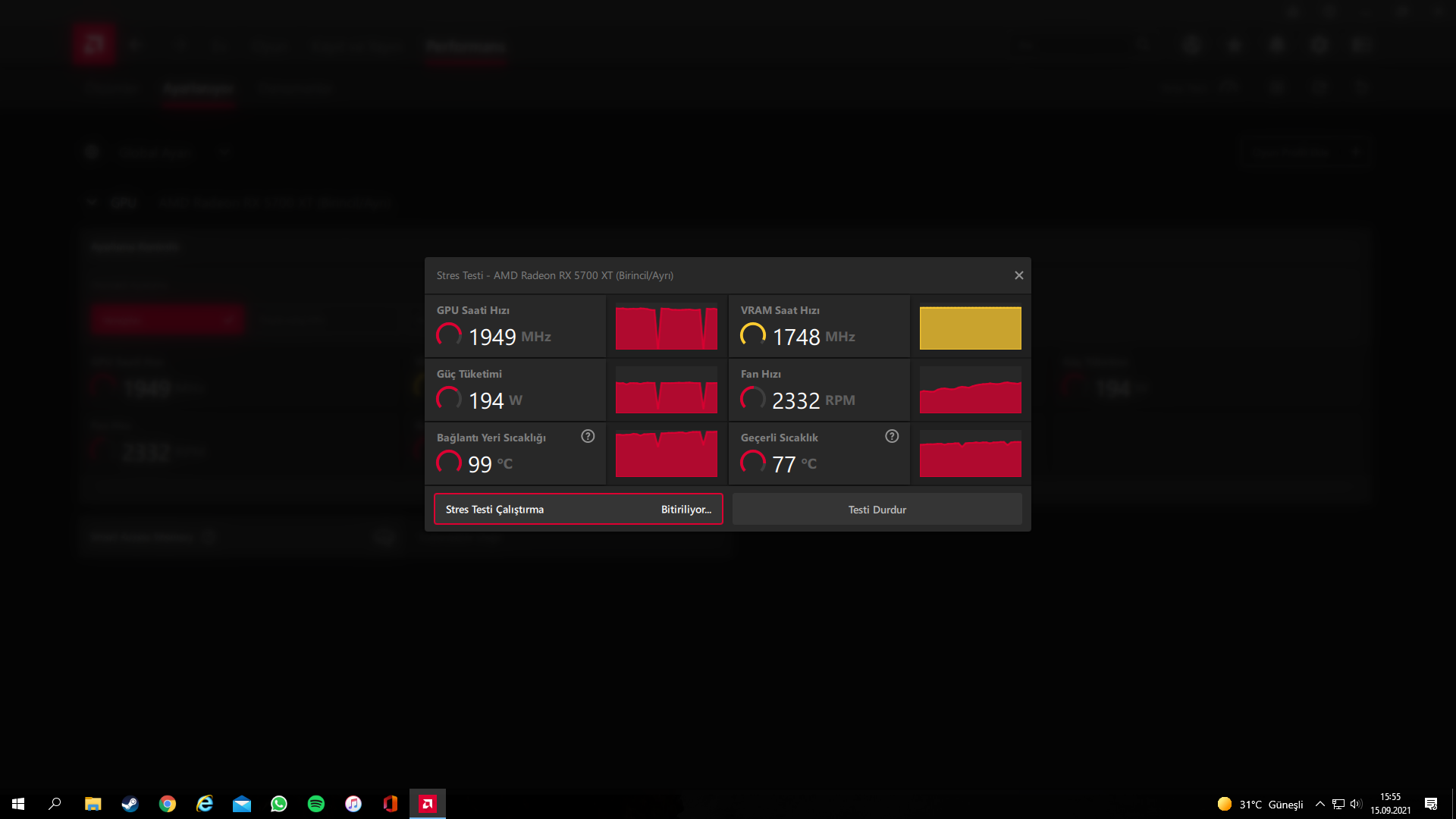Radeon Software'den stres testi yaptığım zaman ekran görüntüsünde görüldüğü üzere değerlerde ani düşüş ve çıkışlar oluyor. Kart aynı zamanda ara ara watman hatası vermekte bununla alakası olabilir mi?