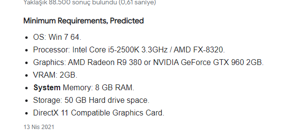 Ekran kartı: RX 580 8 GB 256 Bit.