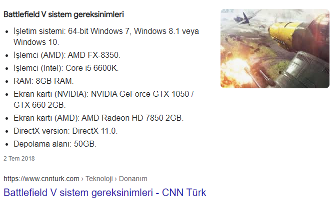 Battlefield V'in sistem gereksinimlerinden düşük olduğunu gözlemleyebilirsin.