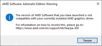 Merhaba arkadaşlar. Cihaz RX580 8 GB. Önceden böyle bir sorun yoktu. Herhangi bir oyun açtığım zaman ekran gidiyor ve restart atasıya kadar geri gelmiyor. DDU ile driver silip güncelledim. Güncellemeden sonra adrenalin uygulaması düzgün açılıyor fakat oyuna girdikten sonra yine siyah ekran geliyor. Restart atıp tekrar adrenalin uygulamasını açmak istediğimde görseldeki hata ile karşılaşıyorum. Hala bir çözüm bulabilmiş değilim. Yardımlarınızı bekliyorum.