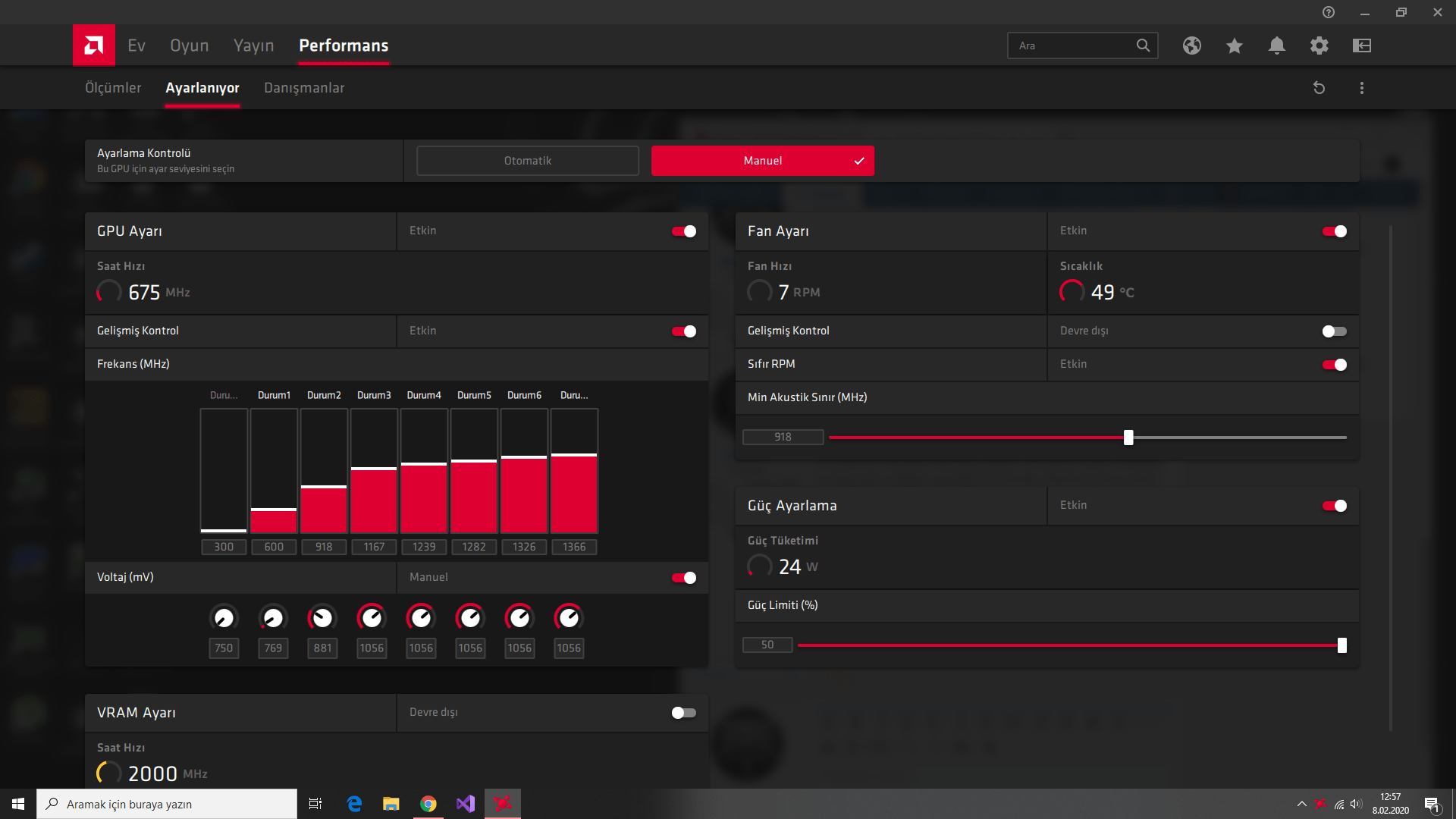 Bu ayarlarla birlikte kart genel olarak 65 dereceyi aşmıyor.