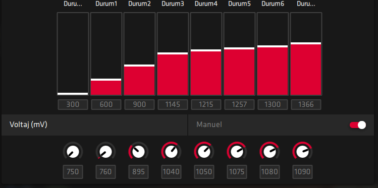 Voltajı fazla düşürdüğüm zaman Wattman hatası alıyordum, bu değerlerde stabil olmasına rağmen 80 dereceleri görüyor oyun içinde, fan ayarı otomatik de olsa fark etmiyor.