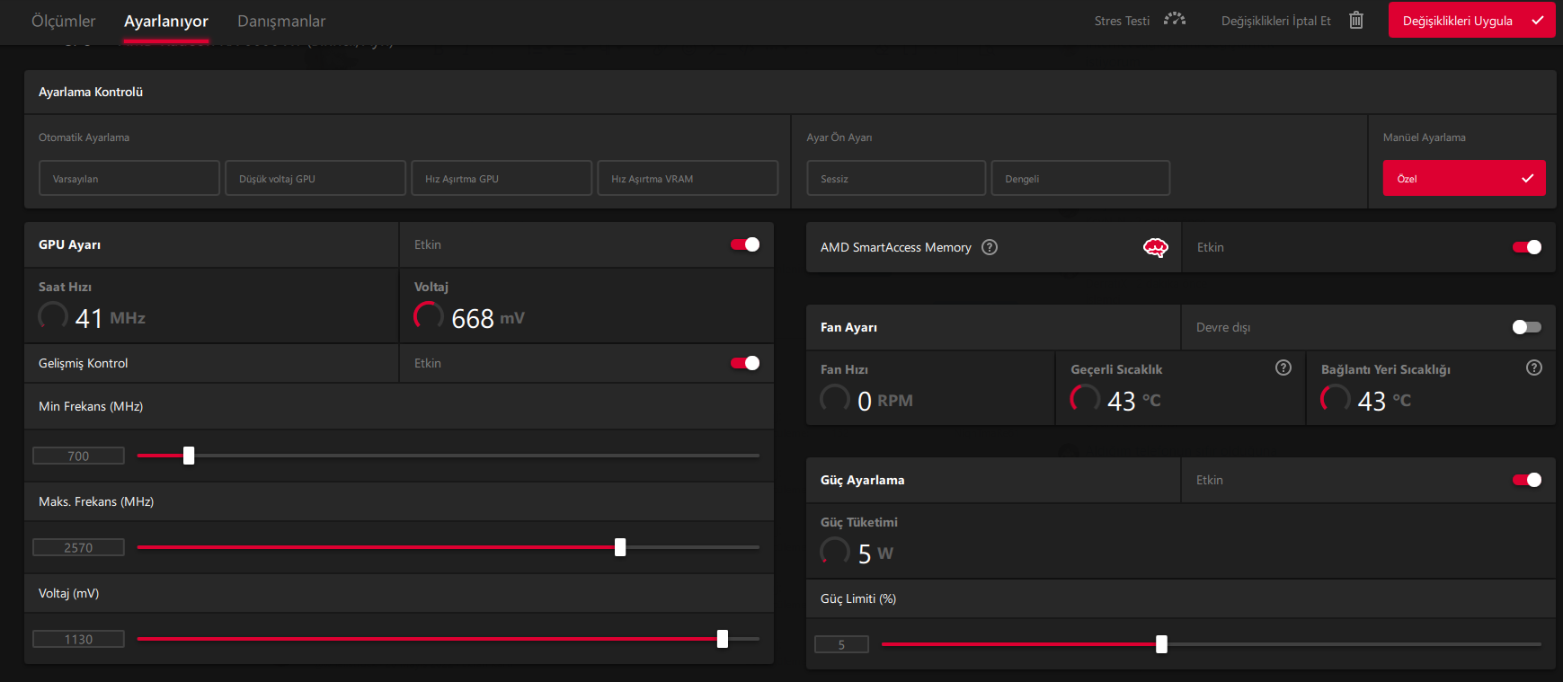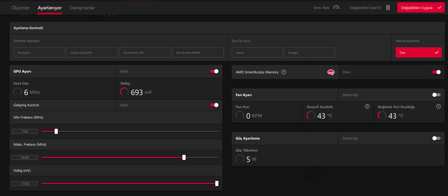 Selam ben bilgisayarı aldığımdan beri WattMan hatası ile uğraşıyordum hızlı başlat kapadım uyku düğmesi falan kapadım chipset güncelledim DDU ile kaldırıp recommended sürümü yüklemiştim(galiba yeni recommended çıkmış emin değilim ama) undervolt ile ilk başta Afterburner ile -100 mv başlayarak denedim(10mv arttırarak denemiştim ama Afterburner zaten kendisi ayarlıyordu eğer ara bir değerde ise) ondan sonra Radeon Software de -100mv başlayıp 6 6 arttırarak denedim hiçbir şey WattMan'ımı çözmedi en çok WattMan veren oyun da roller champions tam ekran alıp oyunu oynayıp çıktığım zaman alıyorum WattMan ne yapmam gerek artık herhangi bir çözümü olan var mı 2-3 günüm tamamen 8 ayda arada bir uzun sürelerim yok oldu bu hata yüzüne yardımcı olursanız sevinirim tekrardan DDU ile kaldırıp yüklemeyi deneyeceğim recommended WHQL sürümü.