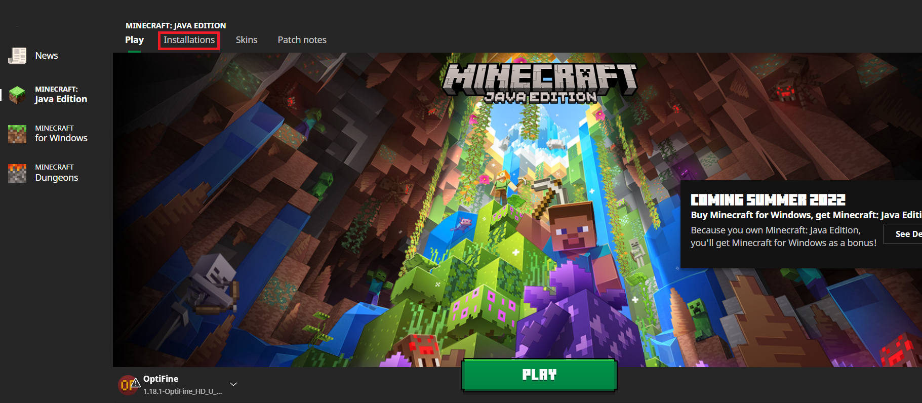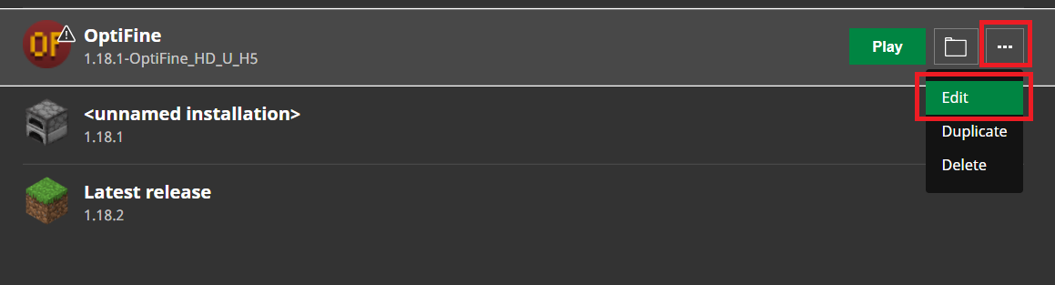 1) OptiFine yüklü olmasına gerek yok. Siz 2. fotoğraftaki ekrandan oynadığınız sürümü seçin. Bende OptiFine kurulu olduğu için OptiFine seçeneği gözüküyor.