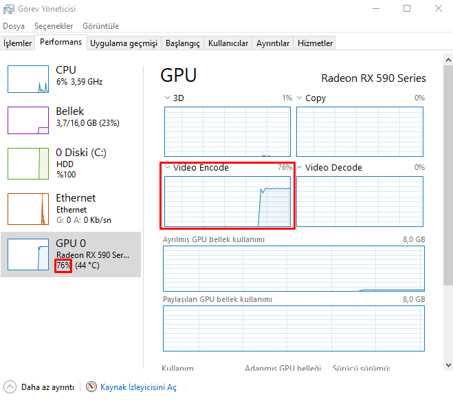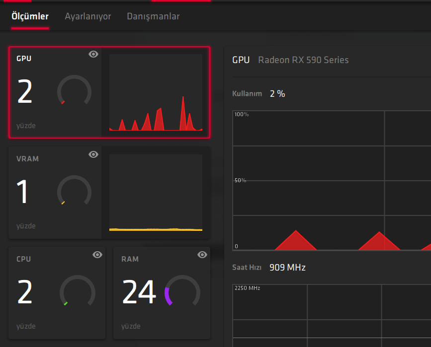 RX 590 ekran kartına sahibim. Görev yöneticisinde GPU kullanımı %70 ve %80 arası gidip geliyor fakat ekran kartının uygulamasından baktığımda %0-5 arası gidip geliyor. Neden böyle bilen var mı ve nasıl düzeltebilirim? (Arkada hiçbir şey açık değil)