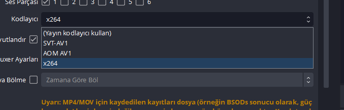 Kodlayıcıda h. 264 gözükmüyor nasıl kuracağım bulamadım ayar önerilerinizi bekliyorum.
