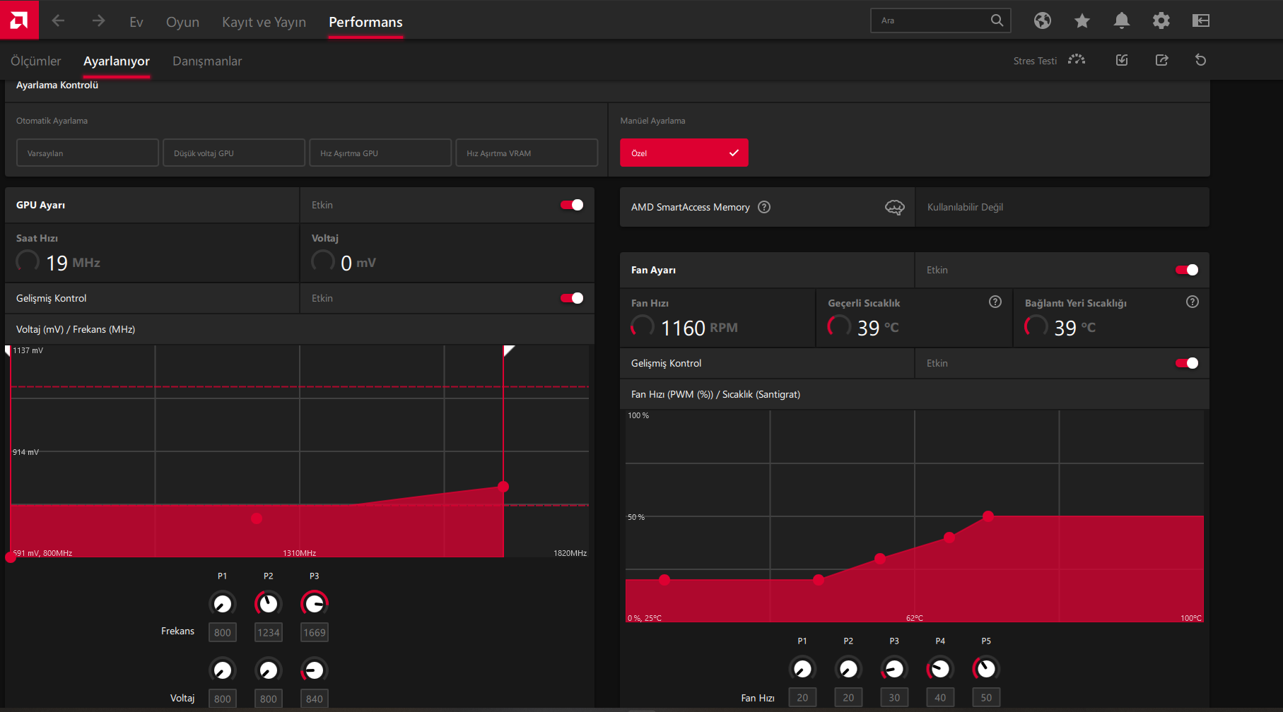 Performans/Ayarlanıyor/Manuel Ayarlama/Gpu ayarı etkin/Gelişmiş Kontrol etkin/İnce ayar kontrolleri etkin.