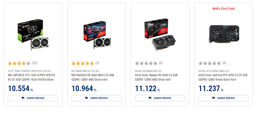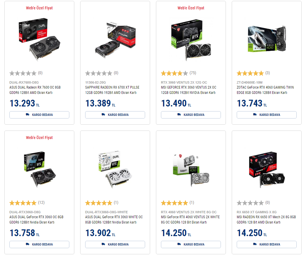 Fiyatlar bir acayip şu ekran da 3060 4060 var ve arka arkaya fiyatlar üstte 7600.