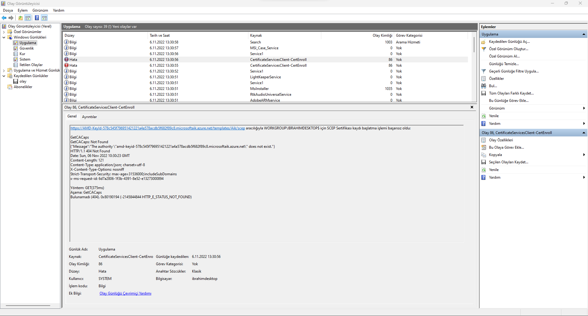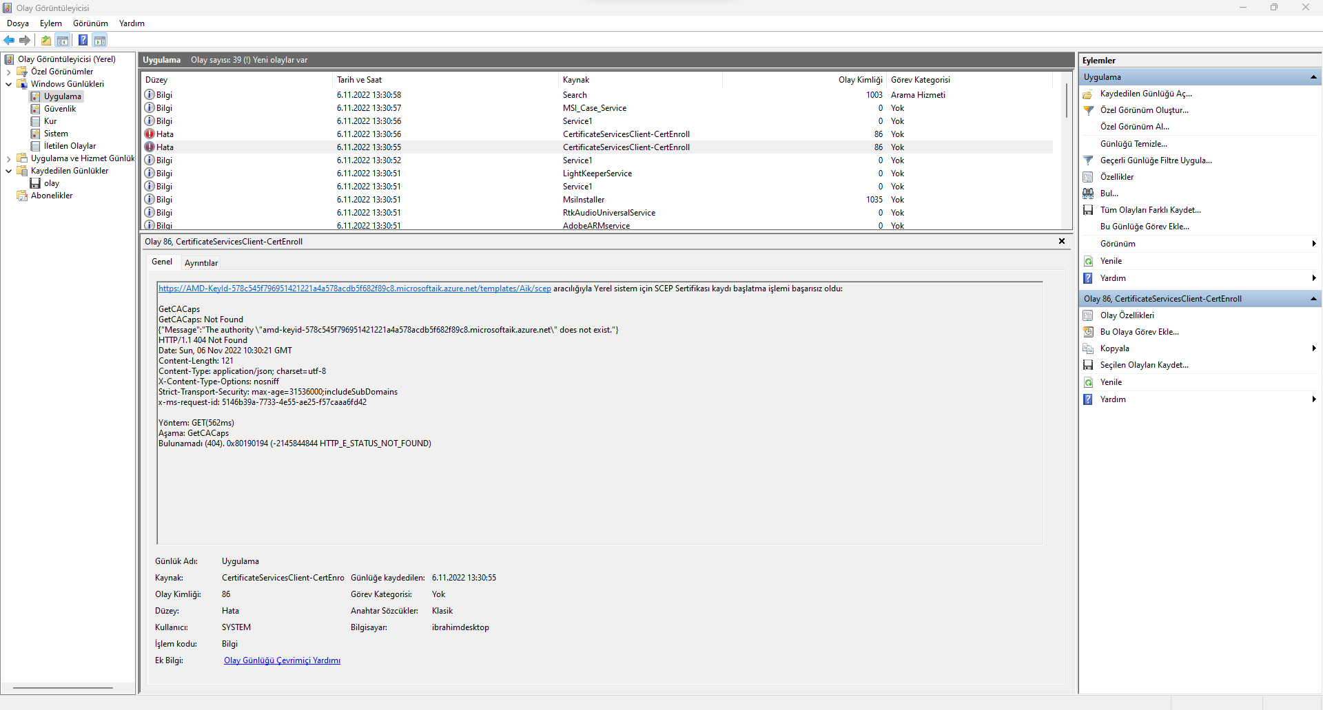 Olay görüntüleyicisinde her defasında aynı hata ile karşılaşıyorum.