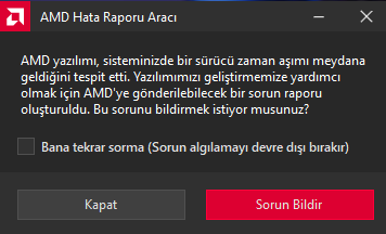 Bazen komple kapanıp açılıyor bazen de birkaç saniye siyah ekran verip sonra ekran gelince sürücü zaman aşımı konunun başındaki ssdeki hatayi veriyor normal de vermiyor arada oyun fark etmeksizin tam ekran geçerken sadece o zamanlarda veriyor bu hatayı.