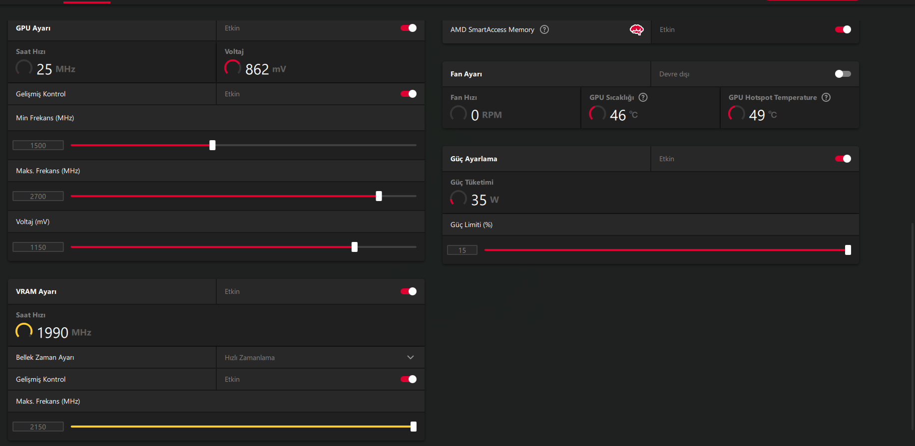Yok yok voltaj değil hocam minimum frekansı sormuştum.Voltaj düşürünce ısının düşmesiyle beraber FPS artıyor. 1150 denedim, stabil. Öyle de bıraktım.