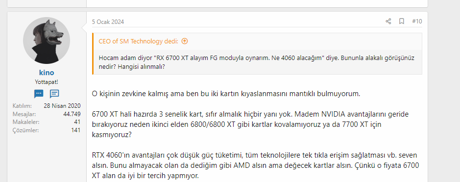 Spekülasyonlar üzerinden konuşuyorsun. RTX 4060'ın şu anki teknolojileri bile yeter ona. RX 6700 XT'nin nesi varmış? Kas gücü isteyen, FPS oyunları oynayacak adam biraz daha koyup eli yüzü düzgün bir şey alsın.