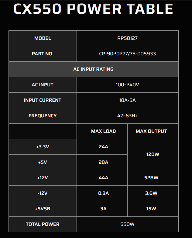 PSU: Corsair CX550W.