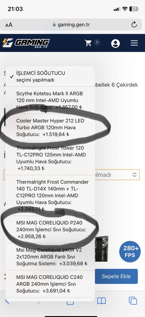 Hocam attığım bu 120 lik sıvı soğutma değil. Normal tip. 1500 liralık olan.