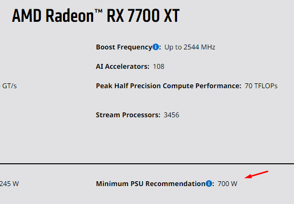 7700XT için AMD sayfasında 700Watt güç kaynağı öneriyor.