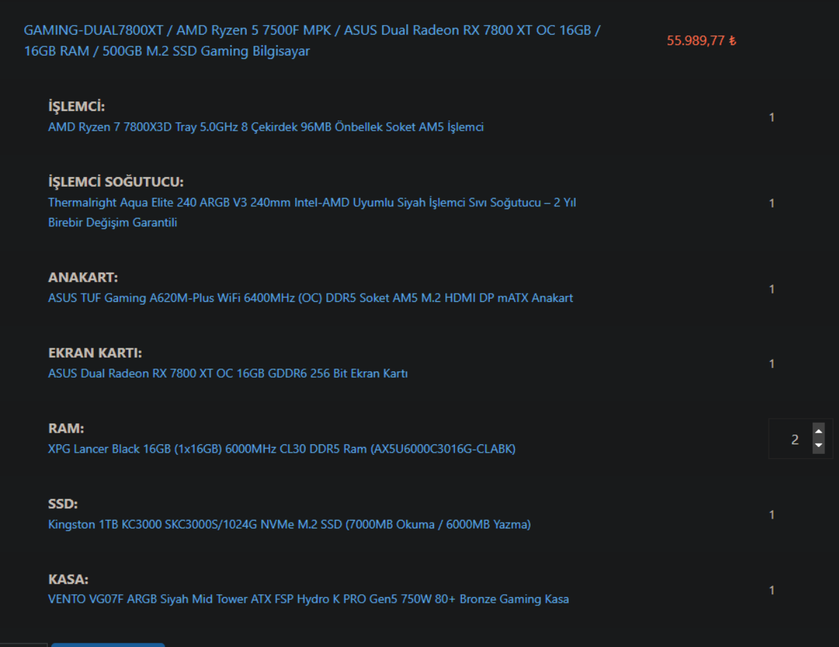 RX 7800XT R7 7800x3D sisteme 240mm sıvı soğutucu ve 2K monitör önerisi