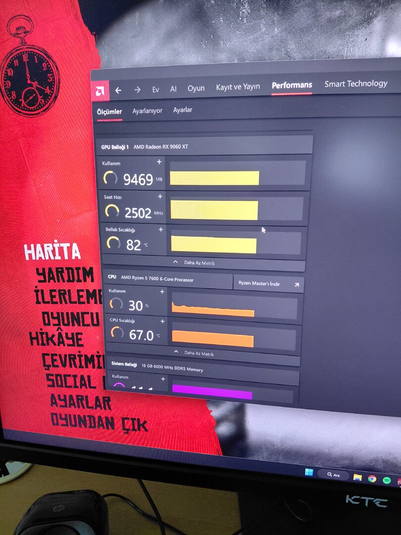 RDR2 oynarken XFX RX 9060 XT 16 GB ekran kartı 82 derecede çalışıyor fazla sıcak değil mi?