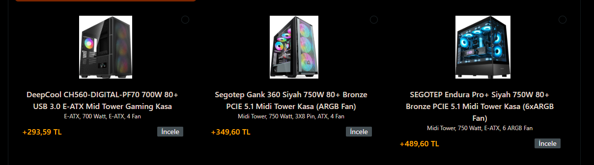 Demek istediğim zaten atılan oem sisteme 600 tl ek versen akvaryum kasalı simsiyah akan bir sistem oluyor ne kadar farkları olabilirki? Beyaz olsun diye gücün içinden geçilmemeli.