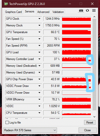 GPU Z'de mavi ile işaretlediğim yerler kapattıktan sonra düştü.