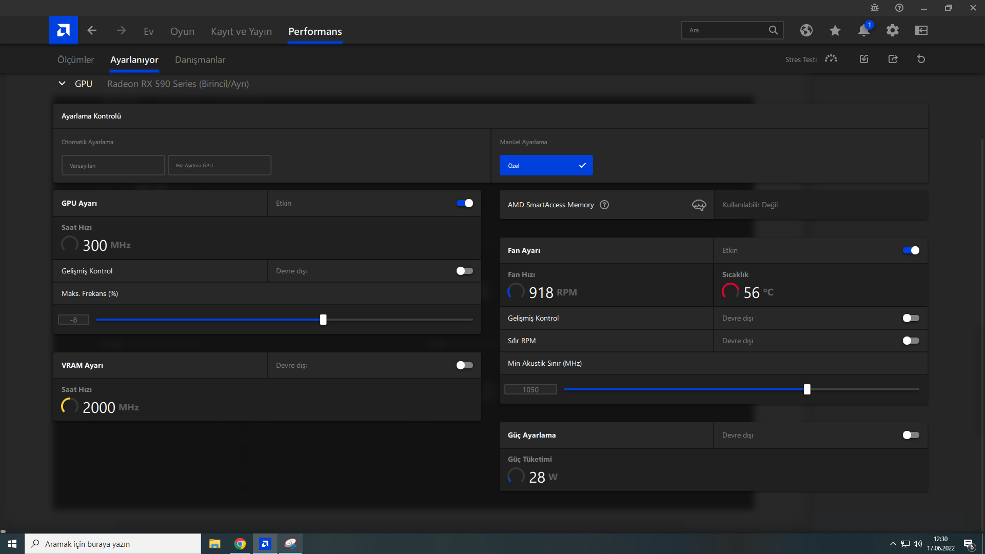 Ayrıca bilgisayar boştayken VRAM 300 MHZ değerlerinde olmalı. VRAM ayarlarıyla oynama yaptınız mı ?