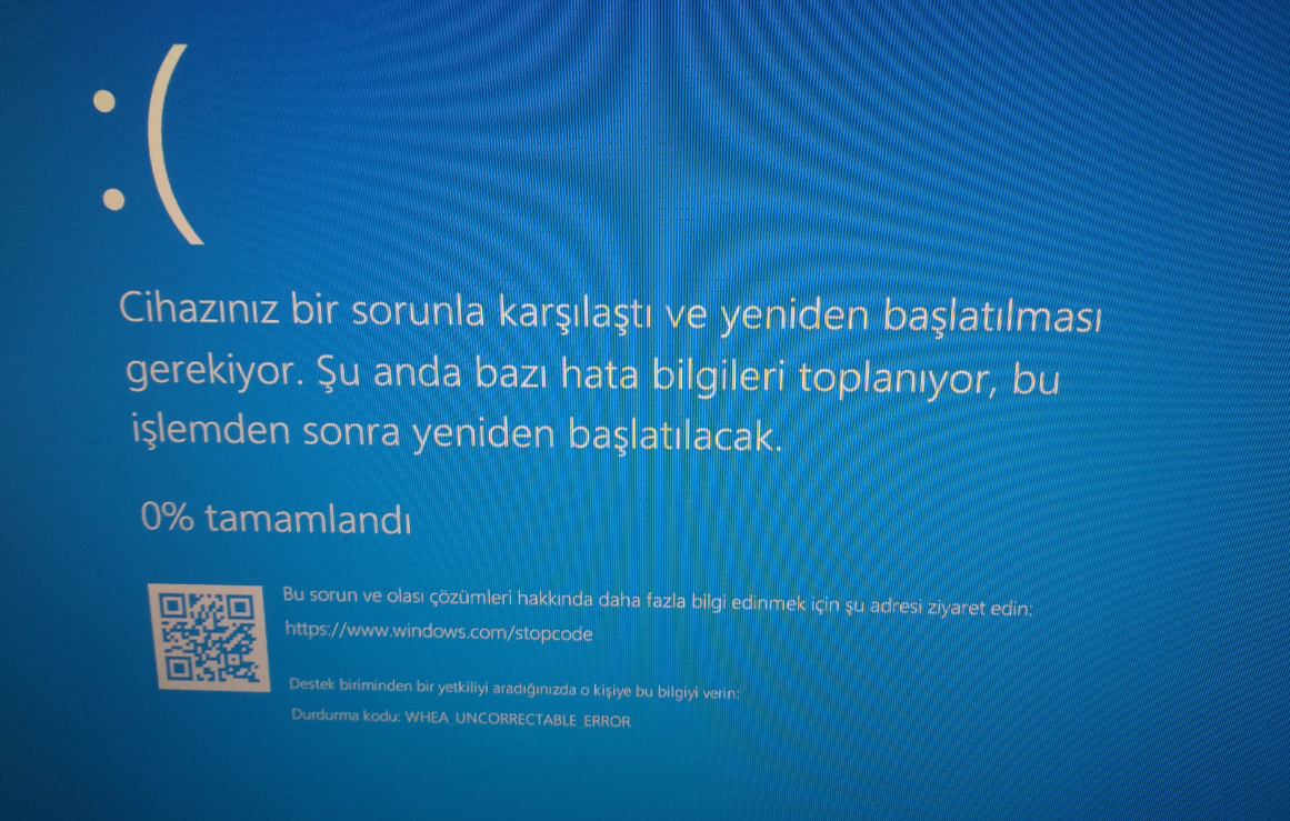 Merhabalar mavi ekranda WHEA_UNCORRECTABLE_ERROR hatası alıyorum her PC'yi açtığımda alıyorum ve %0'da kalıyor minidump dosyası oluşmuyor.
