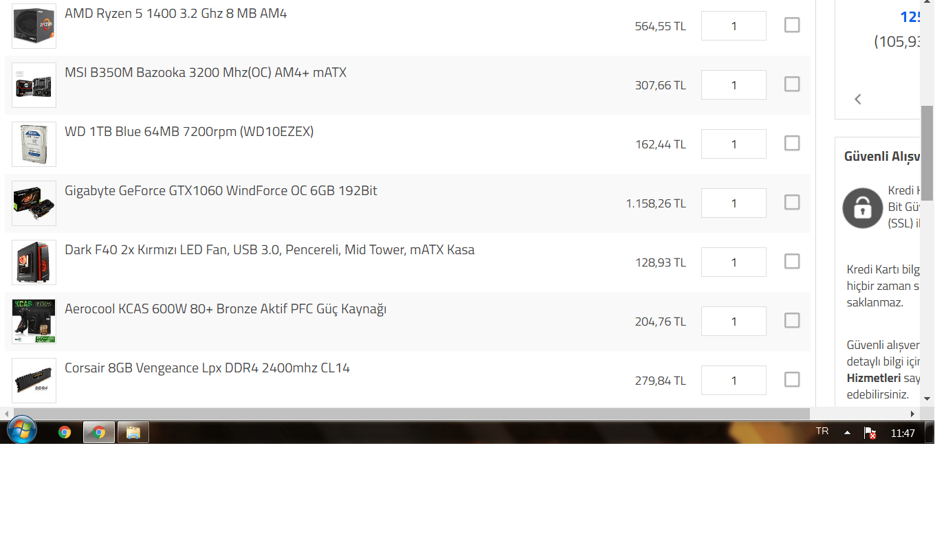 Size parçaları tek tek en ucuz oldukları yerden almayı öneriyorum. Şahsen kendim de öyle yapıyorum. Bunun için akakce.com'u kullanabilirsiniz. Veya Google'da ürünün ismini yazıp, yanına "en ucuz" yazarsanız sizin lehinize olacaktır. Ayrıca RAM en az 8GB olsun. HDD olarak ta Toshiba P300 1TB modeline bakın derim.