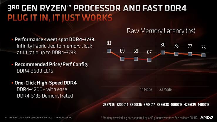 1.45V çok yüksek bir değer. Onun yerine adım adım yükselebilirsiniz. 1.36V, 1.375V, 1.38 gibi. Stabil olmazsa da uğraşmayın bence 4.45GHz üzerinden deneyin, pek bir fark olmuyor. RAM’lere gelirsek normalde 3600MHz’den sonra 2:1 moda geçiyor Ryzen’ler. Bundan dolayı gecikme değerleri 80ns’lere kadar fırlıyor. 4266MHz CL19 RAM’i manuel olarak 3733 ya da çalışırsa 3800MHz CL16 (sizin RAM’ler CL15 hatta Samsung B-die varsa CL14’te de çalışabilir diye düşünüyorum) iyi bir performans artışı sağlarsınız. Bunun için FCLK’u manuel olarak ayarlamanız gerekiyor sadece. AMD’nin konuyla ilgili tablosu;