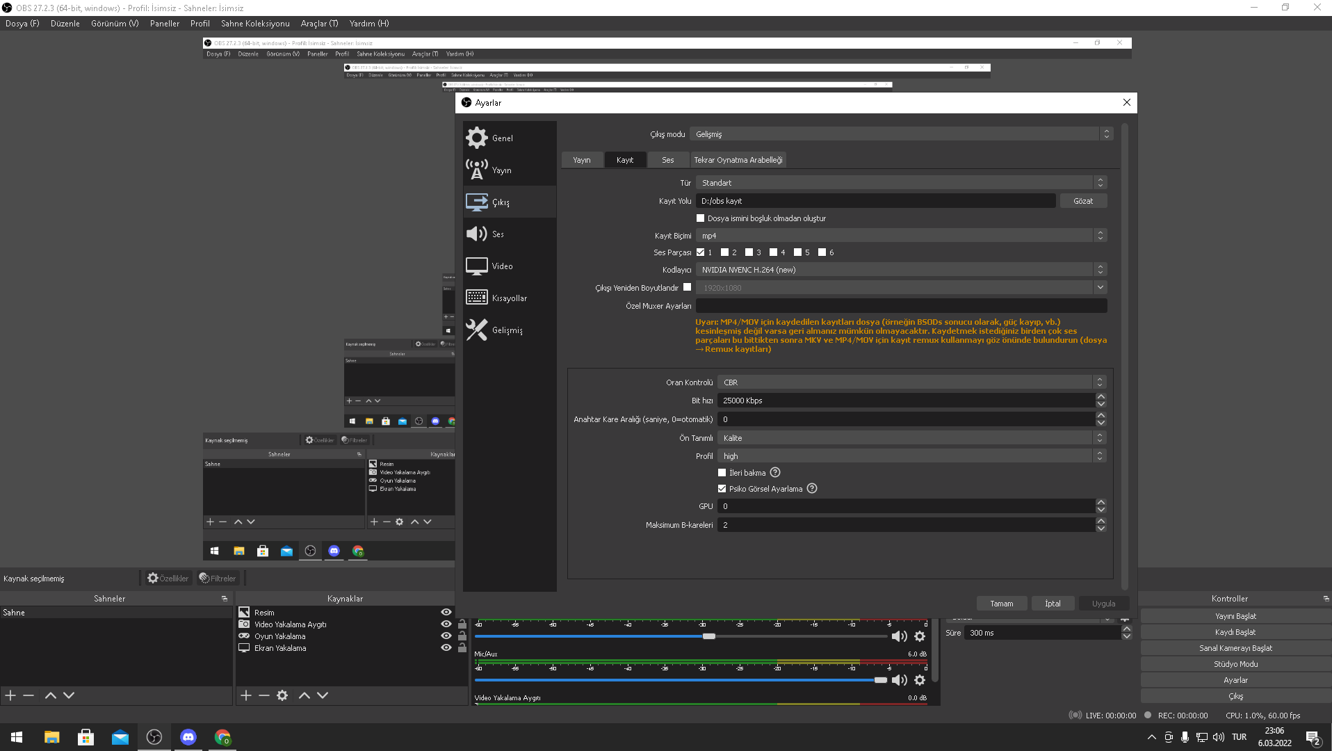 Bir de NVIDIA kendi kaydında aldım OBS'den stream labsden aldım hep aynı kayda alırken çok iyi ama kaydı izlerken kayıtta FPS takılmaları olmuş gibi