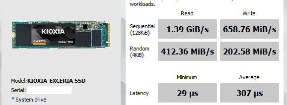SSD: Kioxia 230 GB %92 sağlığı okuma hızları SS'te.