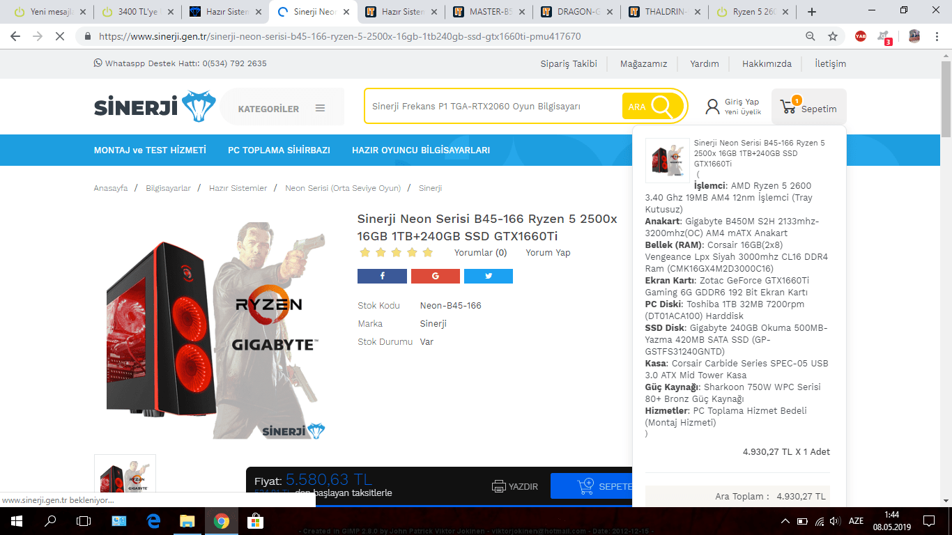 Hazır sistemlere bazı değişiklikler yaptım. Uygun fiyata i5 9400F ve GTX 1660 Ti toplanabilir. 6100-6200TL ye RTX2060 da sığdırabilirim.