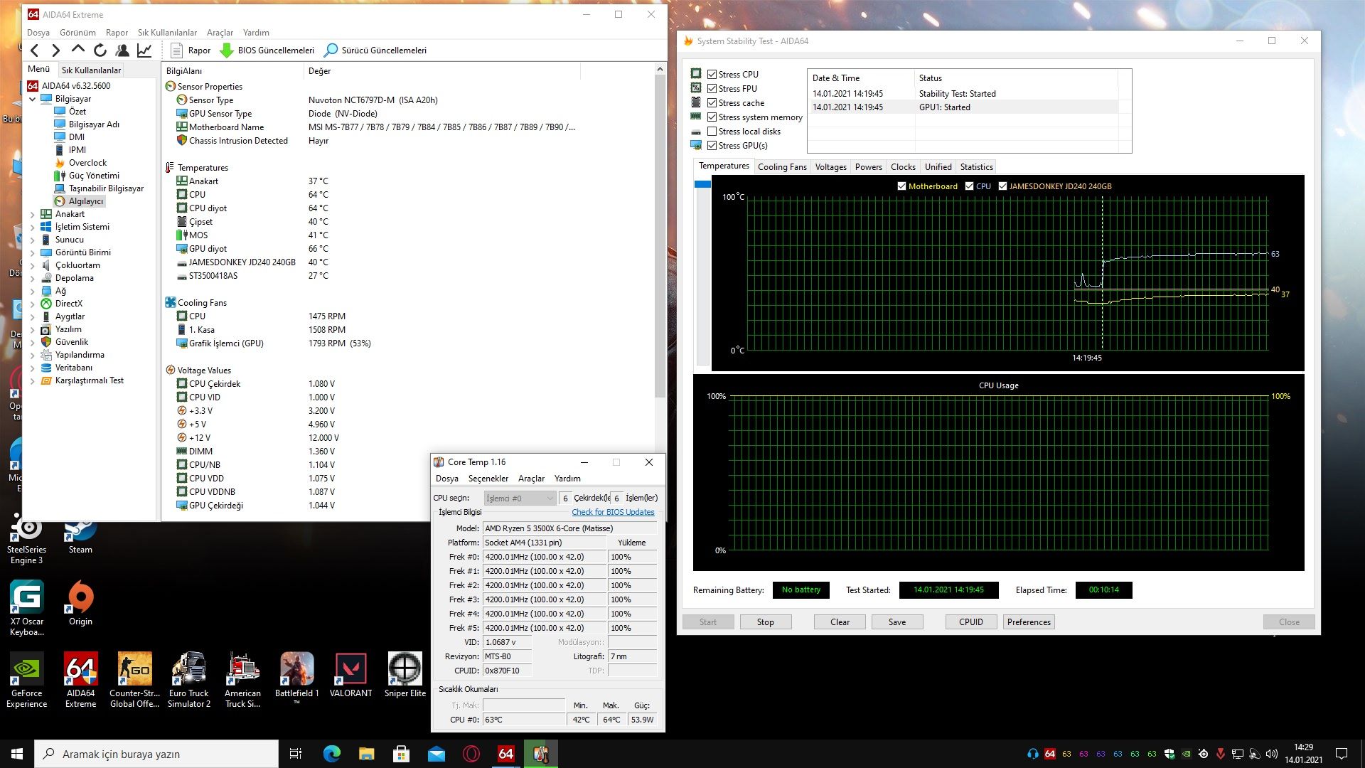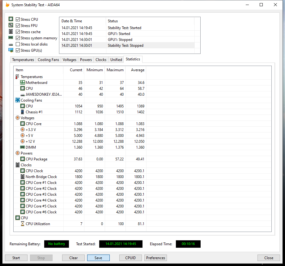 Sonuç olarak geldiğim nokta 4.2 GHz 1.08v bu değelerde 10 dakikalık AIDA 64 sistem kararlılık testini başarı ile geçti CPU en yüksek 64 derece sıcaklığı gördü.