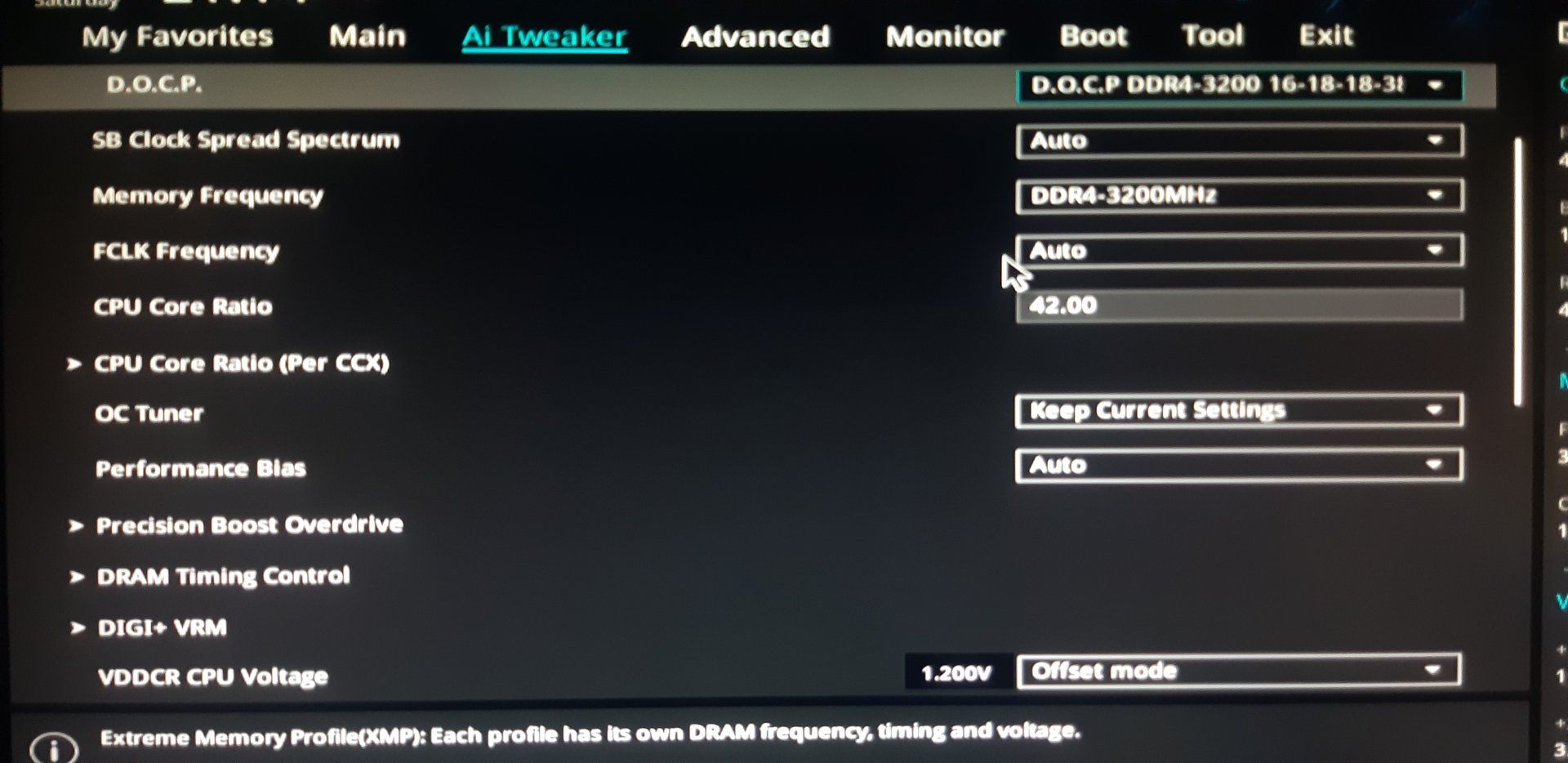 Herşeyi ayarladım son olarak ta o ccx kısmını şu şekilde yaptım.XMP doch aynı şeyler. Otomatik RAM overclock profili.