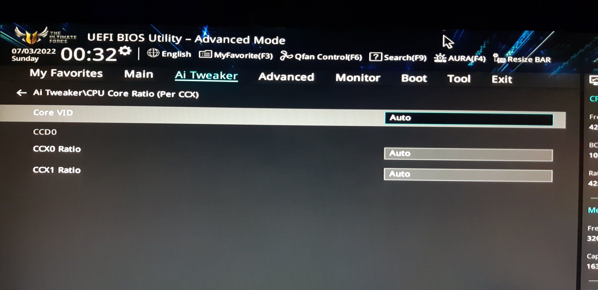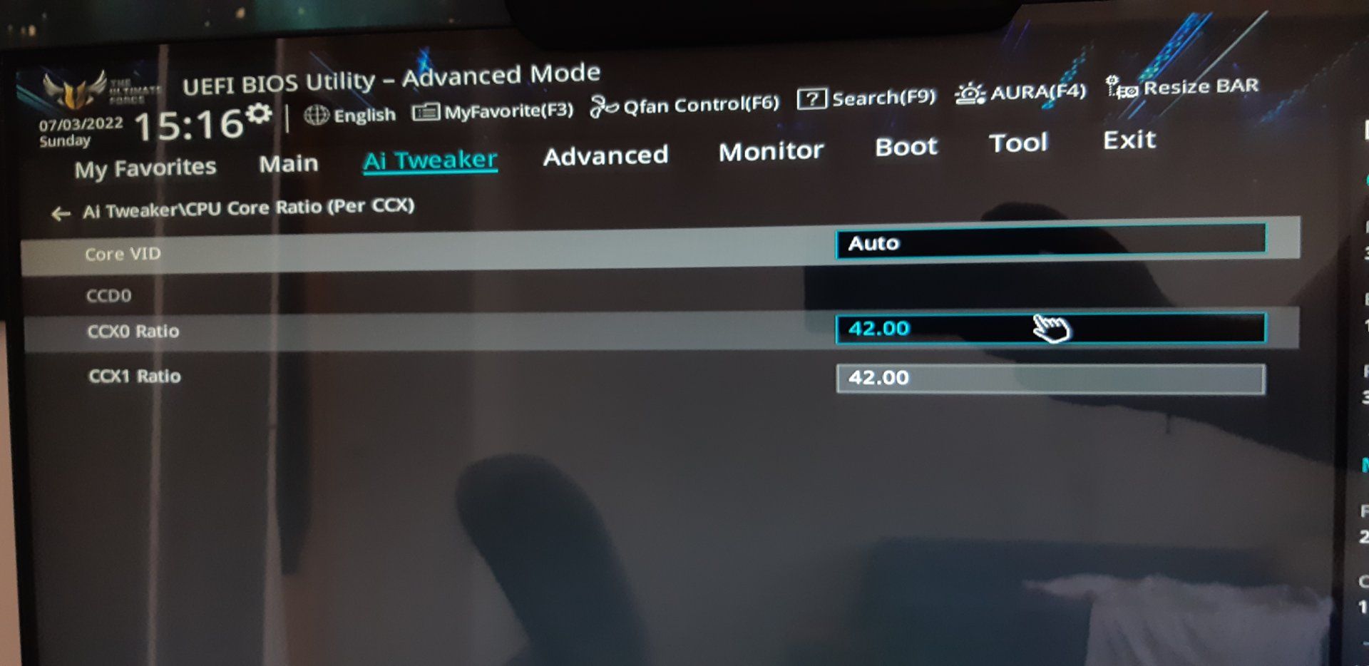 Anladığım kadarıyla asus bios biraz geri kafalı kalmış. Her ccx için(çekirdek grubu) ayrı mhz ayarı girmek gerekiyor.