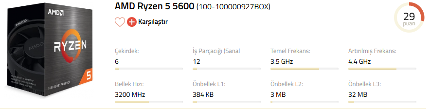 Almak istediğim ise Ryzen 5 5600 özellikleri yine ekteki gibidir. Ve L3 önbelleği onun da 32MB.