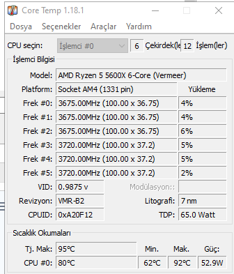Merhaba ben yeni Ryzen 5 5600X işlemci aldım. Bundan önce 3 2200G kullanıyordum. Ekran kartım GTX 1080, anakartım B450M S2H. Ben BIOS Update yaptım en son sürümü indirdim şimdi kurulumunu yaptım işlemci 80 derece gösteriyor Core Temp uygulamasında.