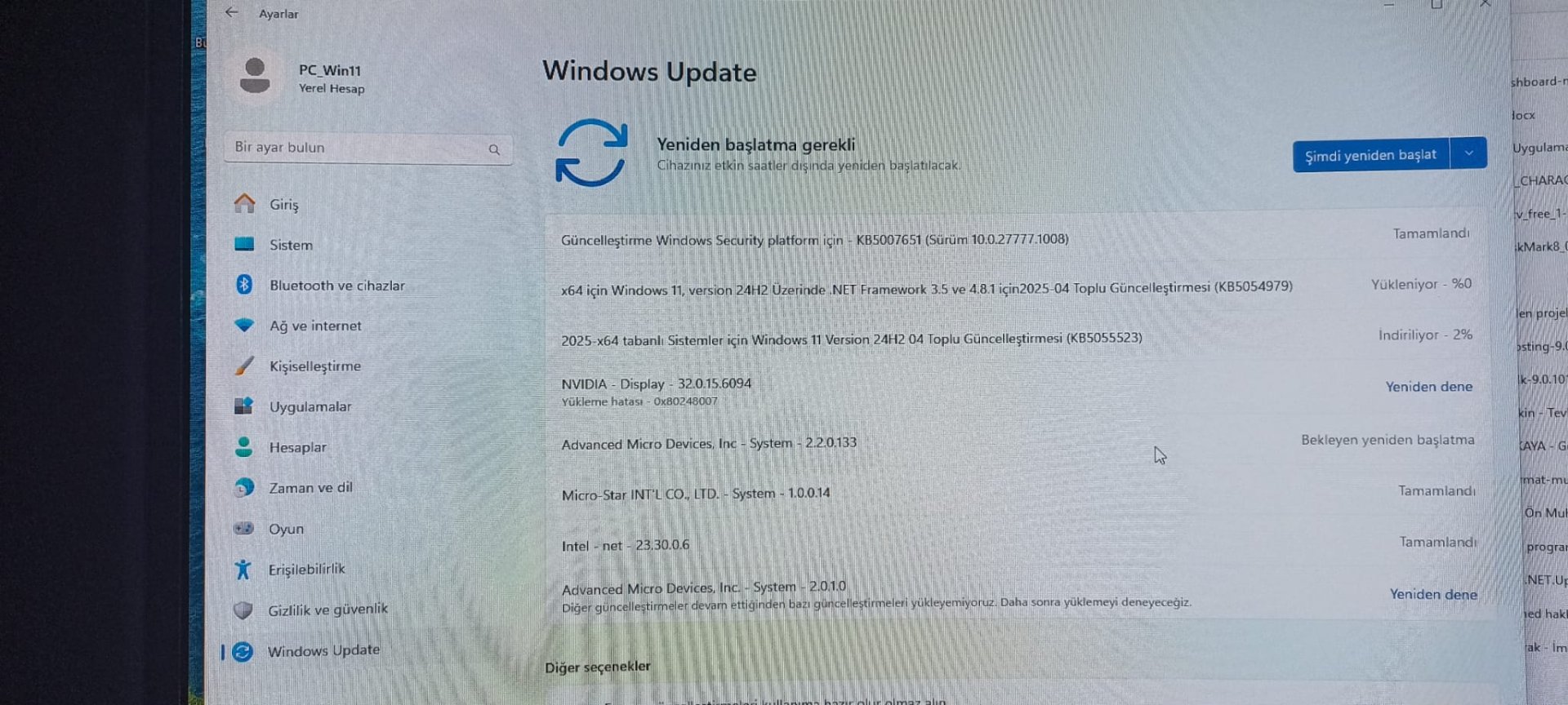 MSI X370 Gaming Plus Anakart üzerinde yer alan AMD Ryzen 7 1700X işlemcili bir bilgisayarımda Windows 11 24H2 sürümünü TPM 2.0 ayarı kapalı durumda iken Kurulumunu gerçekleştirdim. TPM 2.0 açık olması halinde Kurulum Sırasında Hata almaktadır. Hatayı Ek'te paylaşıyorum.