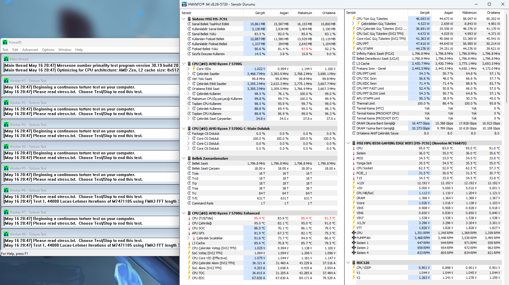 FurMark ve Prime95 testi yaptım 5. dakikada 95 dereceyi buluyor. Kapatınca 4-5 dakikada 40-50 derecelere dönüyor tekrar.