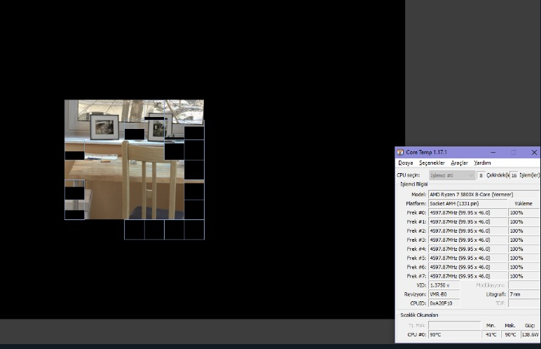 1.30V verdiğimde bile aynı soğutucuyla 90 dereceyi görüyorum. 3300X ve 5800X bu konuda karşılaştırılamazlar. 5800X İçin elle girilen 1.35V sıcaklıkları coşturduğu için fazla.