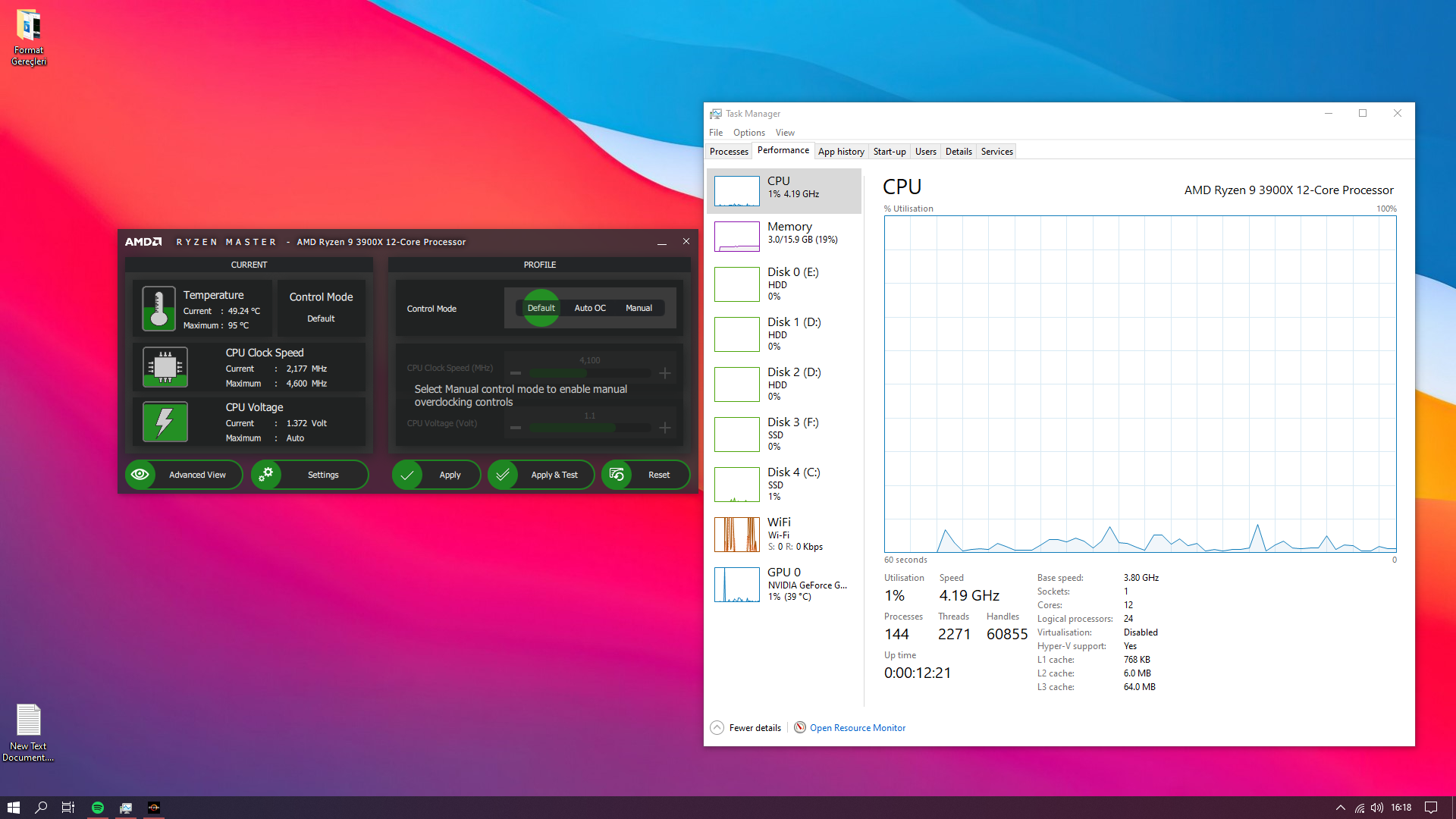 Yaklaşık 1 yıl önce topladığım bilgisayarımın işlemcisi son bir haftadır bayağı ısınmaya başladı. R9 3900X boşta nadiren olsa da 70 dereceye kadar çıkıyor. Genellikle 40-60 derece arasında çalışıyor. Bilgisayarı ilk topladığımda işlemcinin içinden çıkan Wraith Prism soğutucusunu kullandım. İleride sıvı soğutma alacaktım. Fakat son bir haftadır boşta bile nadiren 70 dereceyi görüyor ve 40-60 derece arasında seyrediyor. Bilgisayarı ilk topladığımda Wraith Prism boşta 30-35 derece arasında seyrediyor ve hatta daha da düşebiliyordu yanlış hatırlamıyorsam. Fakat Wraith Prism ile yük altında 95 dereceye kadar da çıkıyordu. Görev yöneticisinden işlemci kullanımına baktığımda %1 iken işlemci sıcaklığı 50 derecelere kadar çıkabiliyor. (CPU kullanımı %0 iken sıcaklık 43 derece) Diğer donanımların da kullanım oranları da yüksek değil. Hal böyleyken Thermaltake TH240 sıvı soğutma ve bunun yanında Cooler Master MasterGel maker Pro termal macun siparişi verdim. Ürünler bana gelmeden önce format da atmayı düşünüyordum ve format attım (tüm diskleri formatladım) ve termal macunu işlemcinin üstüne sürüp sıvı soğutmayı kasama taktıktan sonra durumun yine aynı olduğunu gördüm. 2 ay öncesine kadar Wraith Prism soğutma ile 30-35 derecede iken son bir haftadır bu 40-60 derece arasında seyrediyor ve sıvı soğutma taktığımda durum yine aynı oldu üstelik format atmama rağmen. Yani değişen bir şey yok. Cracklı herhangi bir uygulama/ oyun kullanmıyorum. Format attıktan sonra chipset, BIOS, ekran kartı, ses sürücüsü, LAN sürücüsü gibi güncellemeler yaptım fakat sorun düzelmedi. Windows güncellemesi yaptım yine düzelmedi. (şu an Windows güncellemesi yok ve Windows orijinal).
