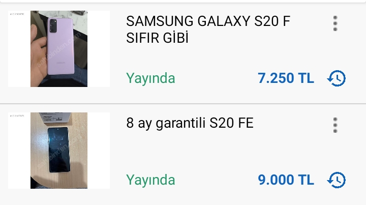 2. el olarak alacağım. Bu fiyatlara en iyi bunları buldum fakat S20 FE bu fiyata değer mi emin olamadım. 7200'e var bir de fakat garantisi yokmuş.