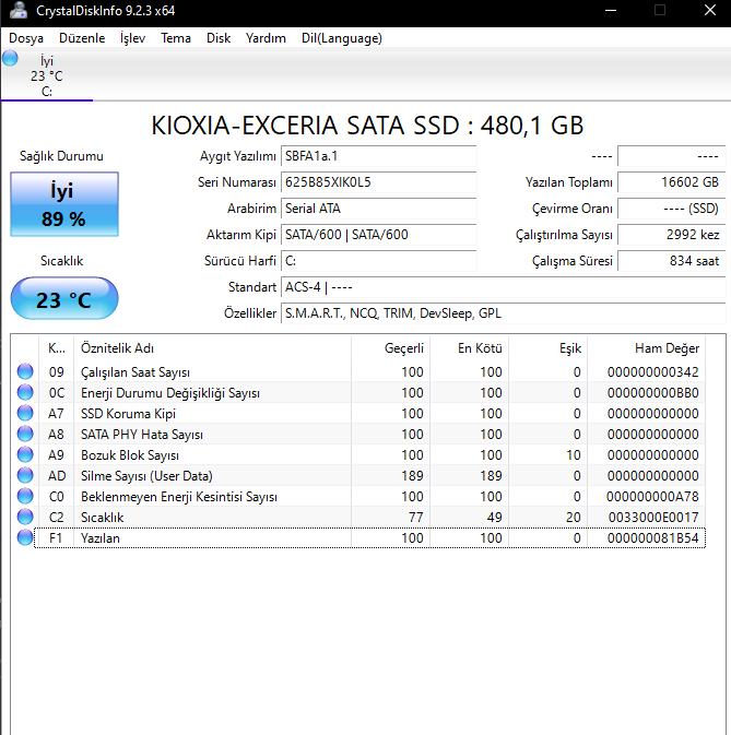 Hocam ben aldım 500gblık bir 2.el hard disk yeni konu açtım orada uygulama testlerinin ss'i var bakabilir misiniz rica etsem? sizce iyi mi hard diskim? uyarı veriyor nedeni nedir?
