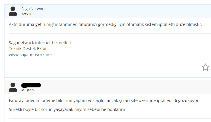 Sonradan öğreniyorum faturayı ödediğimizde destek talebi açıp "Faturayı ödedim, lütfen süremi uzatın" dememiz gerektiğini. Gerçekten ciddi bir amatörlük söz konusu ancak hizmet olarak memnunum diyebilirim.