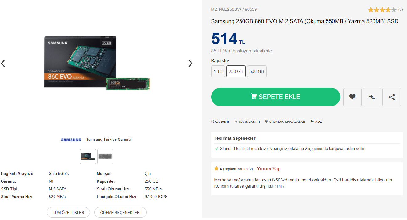 Bu ürünü 29 Ağustosta Vatan Bilgisayar'dan aldım, satmam sebebim ürünün yetersiz kapasiteye sahip olması. Ürünün 2 yıl garantisi mevcut faturasıyla beraber verilecektir. Dilerseniz ürünü Vatan bilgisayardan üzerinize yapabilirim.