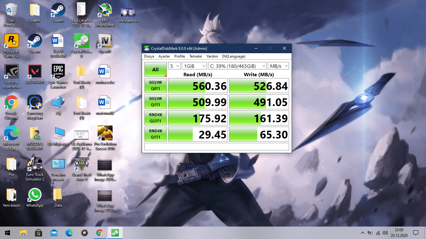 AS SSD Benchmark ve CrystalDiskMark ile de test yapabilir misiniz, bende daha yüksek çıkıyor farklı testlerde. Ayrıca sistem özelliklerinizi ayrıntılı olarak belirtin.