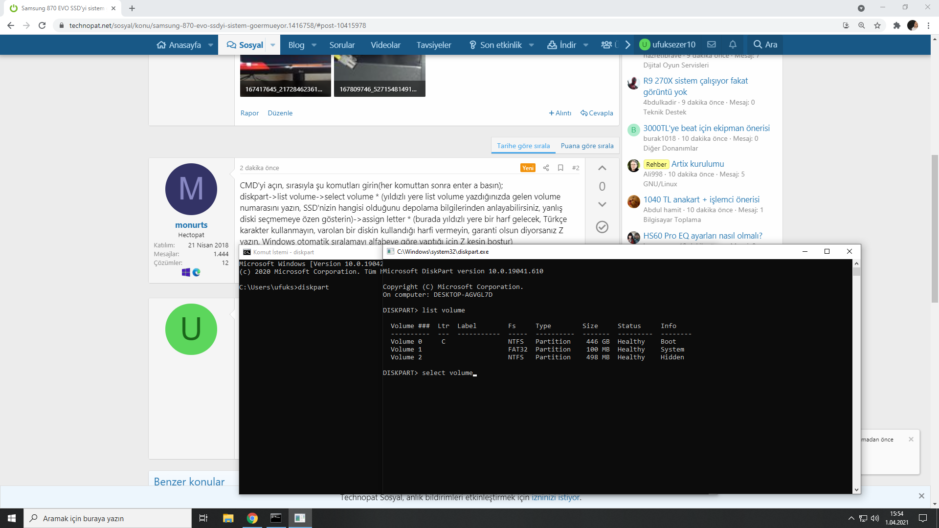 Merhaba, Samsung marka bilgisayarım için 2. bir SSD aldım. Fakat SSD aygıt yöneticisi ve BIOS da görülmesine rağmen disk yönetiminde görülmemektedir bu nedenle şu an kullanamıyorum. Konu ile alakalı ilgili görselleri paylaştım kontrol ederek yardımcı olmanızı rica ediyorum.
